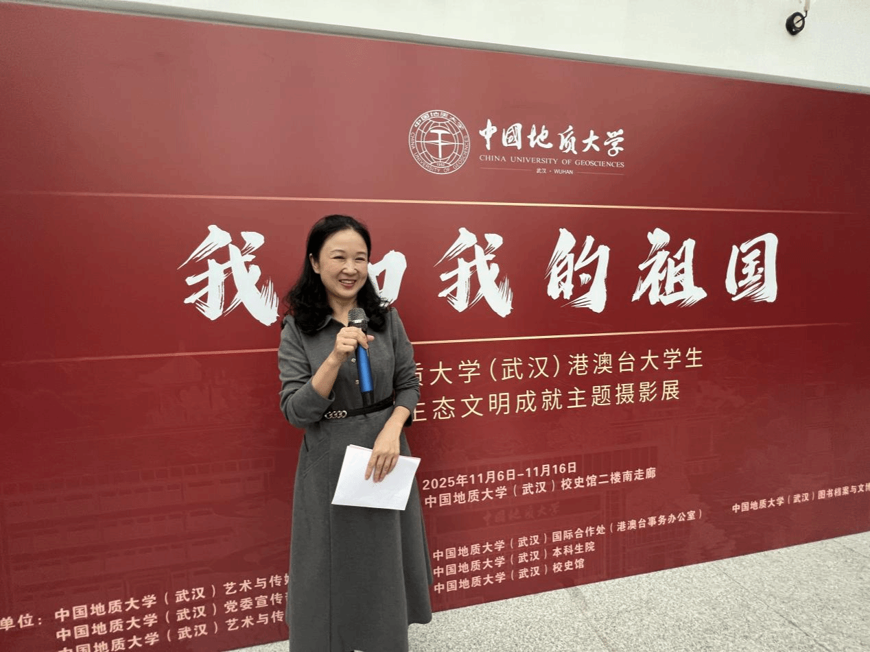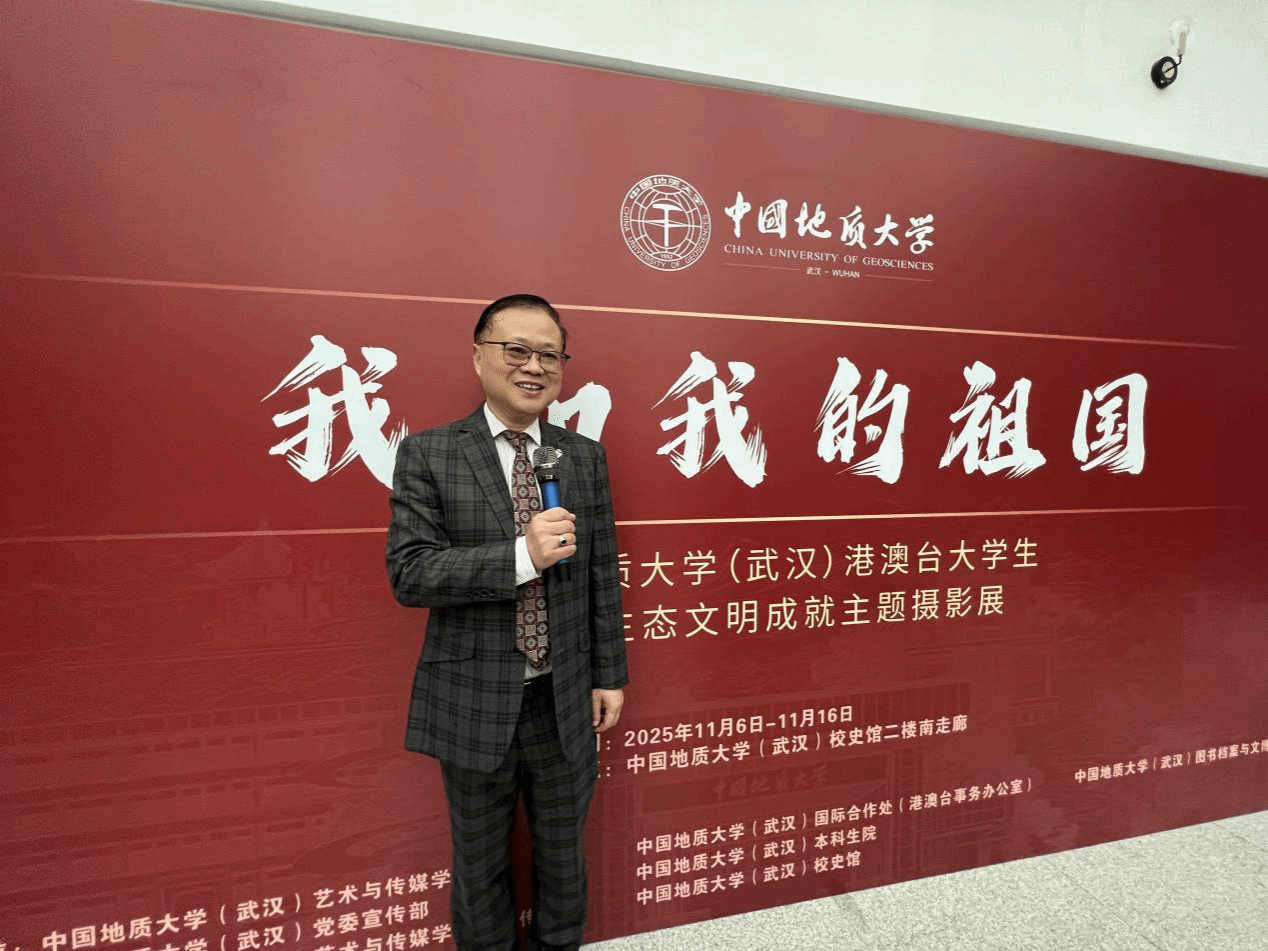 (通讯员 李敏 章奕)2025年11月6日下午15时,中国地质大学(武汉)“我和我的祖国”港澳台大学生祖国生态文明建设成就主题摄影展在中国地质大学(武汉)校史馆正式开幕。国际合作处处长、港澳台事务办公室主任关庆锋,图书档案与文博部部长帅斌,党委宣传部副部长吴仁喜,本科生院副院长高艳丽,图书档案与文博部副部长刘治国、艺术传媒学院副院长张梅珍、华中师范大学新闻传播学院刘震副教授及bevictor伟德新闻传播系20余名师生代表共同出席。仪式由bevictor伟德院长何清俊教授主持。