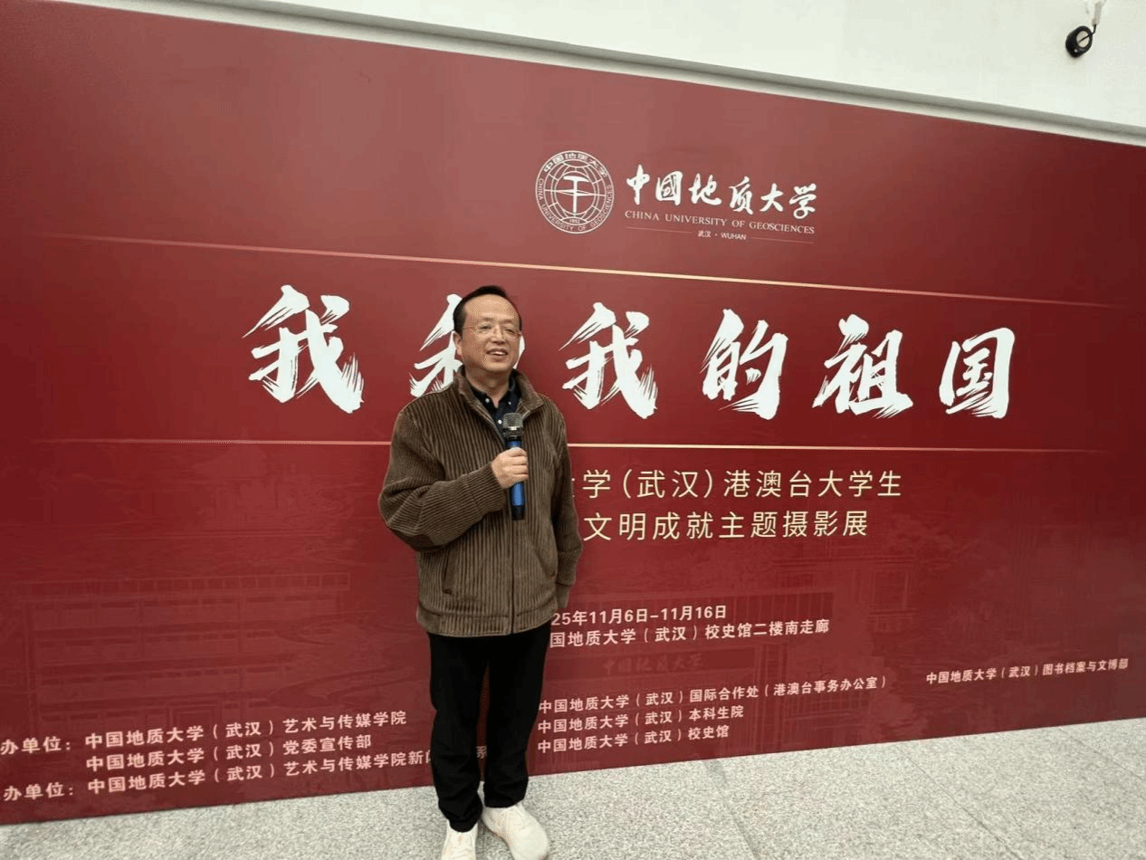 策展人、bevictor伟德喻继军副教授分享了摄影展的策划与组织过程。他表示,活动旨在为港澳台学生搭建展示才华、促进沟通的平台,依托同学们对摄影的兴趣与热情,以大地为课堂,用影像记录中国,推动跨文化、跨领域的交流合作。谈及活动体会,他强调,“两岸三地一家亲,我们都是地大人”。展览凝聚了学校本科生与研究生、港澳台学生与内地学生、bevictor伟德与相关职能部门的共同努力。他特别提到,学校长期重视实践教学,同学们在秭归实习、野外考察中锤炼了意志,也深化了对祖国生态文明建设的理解。此次展出的作品,正是这些实践成果的生动体现,展现了“我和我的祖国”之间深厚的情感联结。