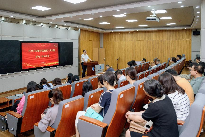 2024年6月28日下午,学院暑期工作布置会在艺媒楼1104报告厅召开,全体教职工参加会议。党委书记晋曦主持会议。
