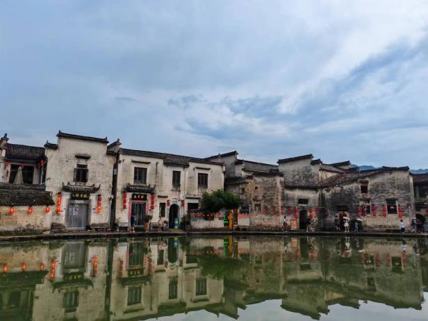 第六天,大家来到了宏村考察,宏村相比皖南地区其他的徽派民居更加商业化,这里的淳朴和自然已经逐渐淡化,但好在白墙青瓦的民居建筑保留了徽州的特色和历史文化。村落依山傍水,村中的月昭池是宏村特色的点缀,古民居在月昭池上的倒影如同一幅水墨画,大街小巷的涓涓细流也让宏村更具有活力。当天的绵绵细雨打湿了石板路,清新潮湿的空气沁人心脾,配合随处可见的红灯笼,给人即闲适又热闹的感受,此刻我们远离了城市的喧嚣,真正进入这座千年古村。