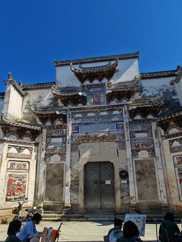 第四天,大家前往西递考察、摄影。西递有着悠久的历史文化和最为原始的农村面貌,农田湿地里的鸭鹅皆是美景。走在古民居中,黛瓦、粉壁、马头墙展现着徽派建筑的特色,质朴、淡雅的色调给人以亲切的感受,高低错落的形体节奏在视觉上给人以和谐和愉悦的审美享受。惇仁堂、敬爱堂、尚德堂等建筑展现了中国古人的思想观念和审美情趣,让我们体会了明清时期的建筑特点。