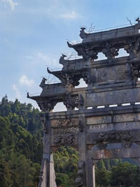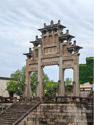 首站到屏山村,屏山村位于安徽省黄山市黟县县城东北约4公里的屏风山和吉阳山的山麓。属于典型的江南水乡村落。同学和老师们跟随导游走进这个千年古村,了解它的历史并观赏原生态的村落。村里的宗祠都非常漂亮,采用彩塑砖雕,里面的木雕也非常精美。该村沿溪而建的民宅、古朴的石桥、桥下潺潺的溪水,构成了典型的“小桥、流水、人家”的徽派风格,有着浓厚的生活气息,漫步在其中心也跟着变得宁静。