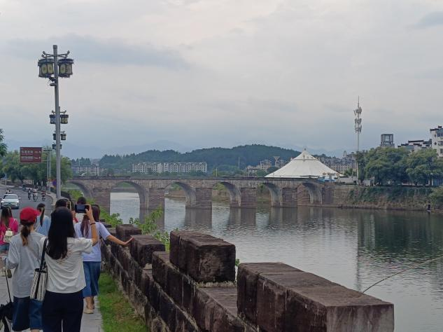 傍晚,大家一起动身前往屯溪老街。屯溪老街包括1条直街、3条横街和18条小巷,由不同年代建成的300余幢徽派建筑构成的整个街巷,呈鱼骨架形分布,西部狭窄、东部较宽。因屯溪老街坐落在横江、率水和新安江三江汇流之处,所以又被称为流动的”清明上河图"。