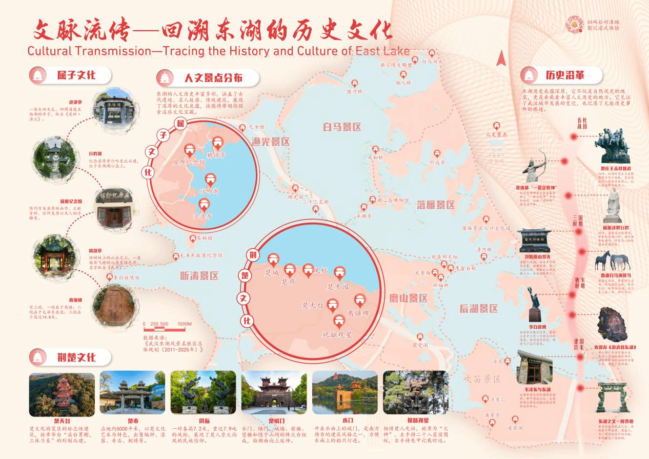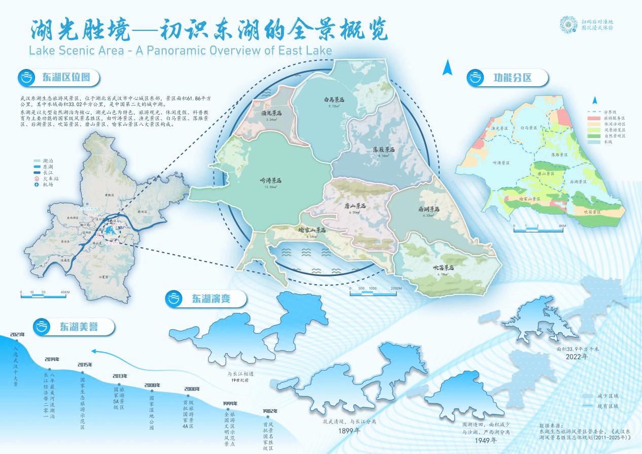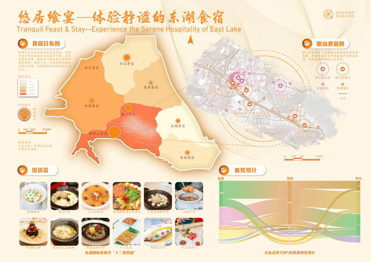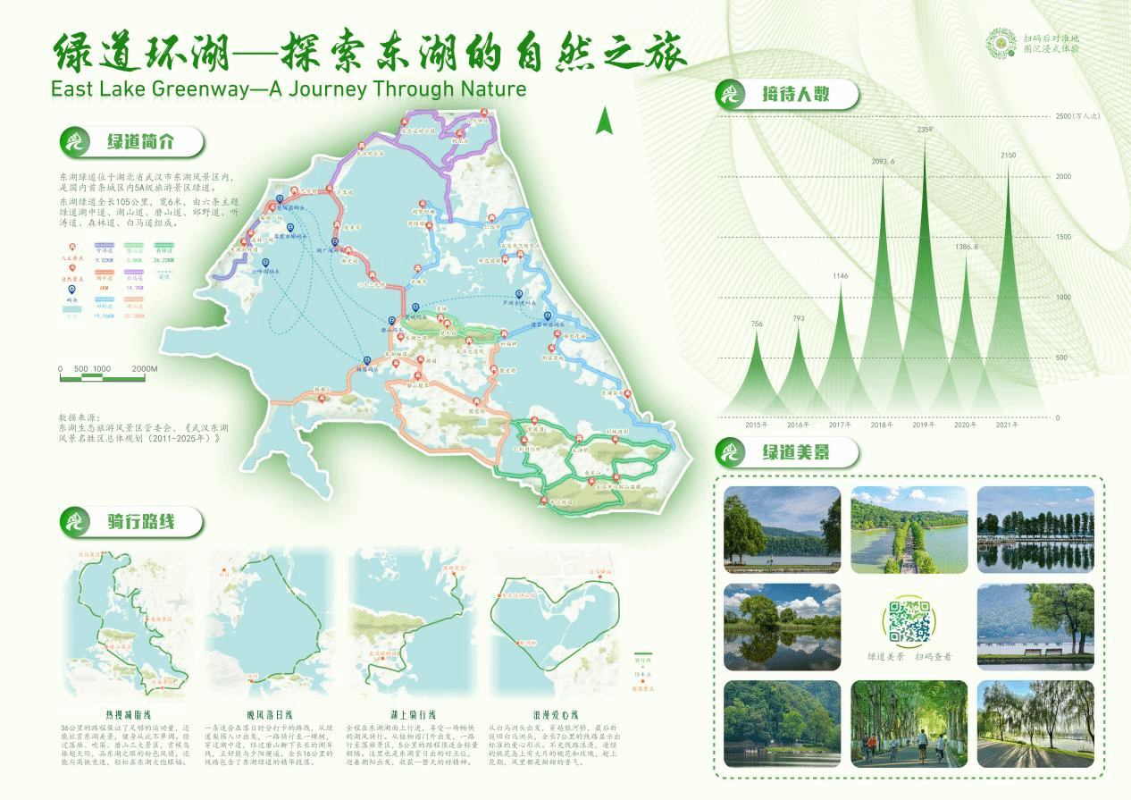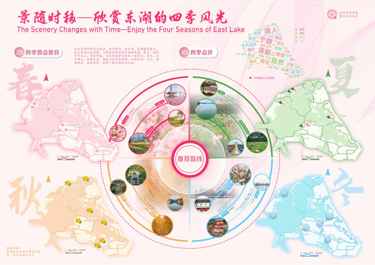 本次大赛提交的作品为《东湖印鉴——体悟东湖卓异魅力》,该系列地图(见下图)贯彻党的二十大报告“坚持以文塑旅、以旅彰文,推进文化和旅游深度融合发展”的文旅思想,围绕区位概况、东湖绿道、餐饮住宿、四季风光以及历史文化五个方面,向观众展示东湖“生态之美”“文化之魂”和“旅游之韵”的多重魅力。