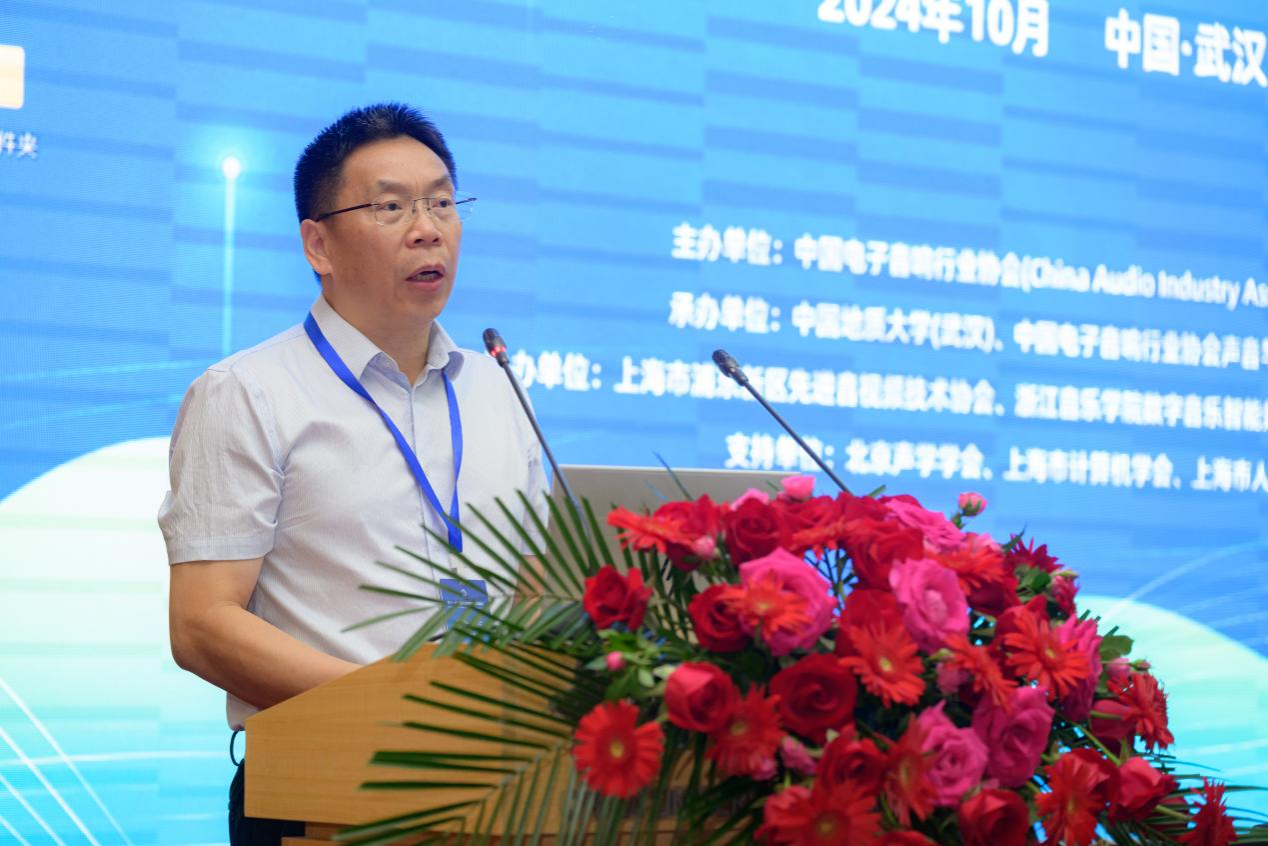 我校党务副书记王甫在致辞时表示,中国地质大学(武汉)作为本次会议的承办方深感荣幸,他代表中国地质大学(武汉)欢迎大家来到江城武汉。地大长期以来致力于推动声音与音乐技术领域的人才培养和科学研究,本次大会奏响迎宾曲的“海百合音乐机器人”,是学校艺术与科技交互融合的一项重要成果。党的二十届三中全会通过的《决定》中指出,要强化科技教育与人文教育协同。未来的几天里,将有机会聆听到来自国内外专家学者的精彩报告,参与到多个专题论坛的深入讨论。因此,这既是一次学界同仁进行学术交流、开展话题探讨的大会,也是一次业界同行碰撞思想、激发灵感的机会,更是大家共同推动声音与音乐技术创新发展、推进艺术与科技交叉融合的盛会。