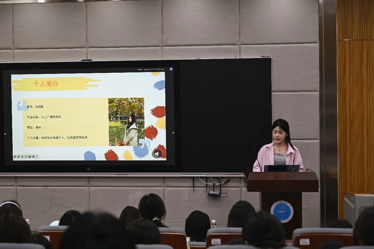 首先由学生会主席团成员王艺霖简要介绍了学院学生会和分团委的整体架构,让同学们对艺媒的学生组织有了基本的了解。