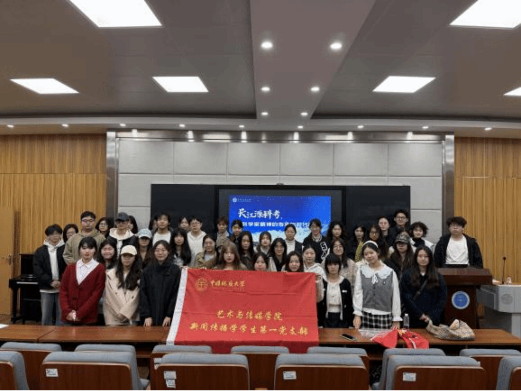 2026年3月,宣讲团先后走进新闻传播学学生第一党支部和交互数媒学生第二党支部。在新闻传播学学生第一党支部,宣讲团结合长江流域生态保护实际,将“共抓大保护,不搞大开发”的国家战略转化为青年学生身边可践行的小事,并特别介绍了张越森、苗世鹏、张典等优秀学子在科考中的成长故事——张越森克服高原反应探源源头河水,苗世鹏感受“漫长地质历史就在脚下”的震撼,张典以最年轻成员身份登上海拔5700米的格拉丹东腹地。这些同龄人的奋斗故事深深打动了在场同学,新闻传播学学生第一党支部成员表示将用好专业所学,做科学家精神的传播者、长江大保护的记录者。