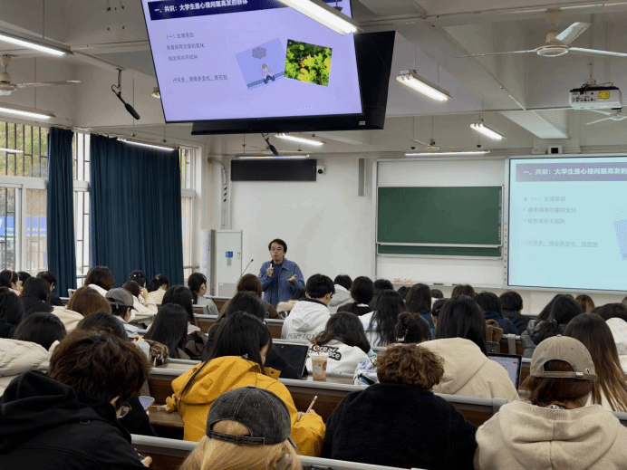 春季是学生心理问题的高发期,学业压力、情绪波动、人际关系等问题易集中显现。黄海老师以“春季常见心理问题识别与干预”为主题,结合高校学生心理工作的实际场景,从春季心理问题的诱因、常见类型、识别方法、干预技巧等多个维度展开系统讲解。培训中,黄海老师结合大量真实案例,详细拆解春季高发心理问题的典型表现,帮助学生骨干掌握“早发现、早识别、早干预”的核心要点。