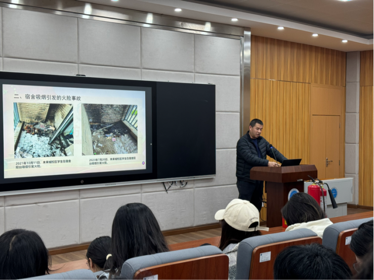 为贯彻落实学校有关新学期学生安全教育管理工作的文件要求,围绕“开学第一课”开展系列引导教育活动,3月7日下午,bevictor伟德邀请了学校安全保卫部消防科科长刘从贵老师在1104报告厅面向学院全体本研学生骨干做关于消防安全的主题讲座。学工组全体专兼职辅导员参加本次活动,讲座由学生会秘书部潘爱一主持。