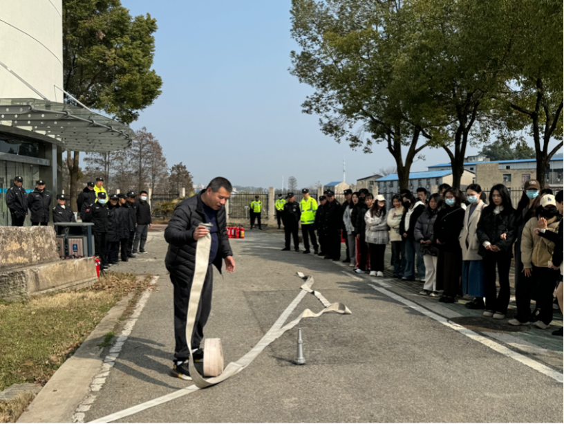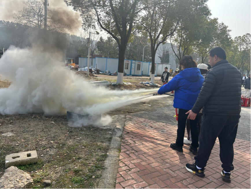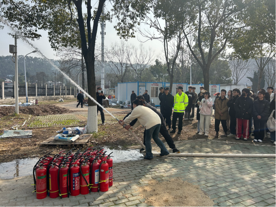 理论培训结束后,刘从贵老师在安全保卫部消防科其他工作人员的配合下,带领同学们前往艺媒楼前空地进行消防安全的实操演练。刘老师手把手教授同学们如何正确使用消防器材,并让同学们按照分组依次体验干粉灭火器灭火的全过程。通过实际操作,同学们对消防器材的使用方法和火灾应对技能有了更加直观和深刻的认识。