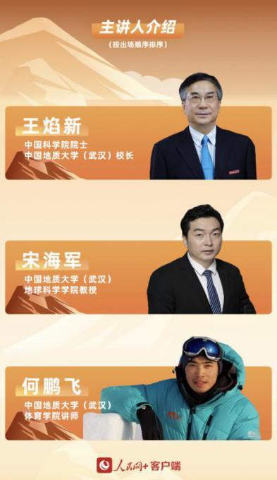 中国科学院院士、中国地质大学(武汉)校长王焰新为同学们诠释了登顶珠峰对我国的重要意义以及一代代攀登者追求的攀登精神内核;地球科学学院教授宋海军结合亲身科研经历鼓励同学们以兴趣为导向不断探索学习;体育学院青年教师何鹏飞为我们讲述他征服珠峰的感人故事,激励同学们勇于追梦、勤于圆梦。