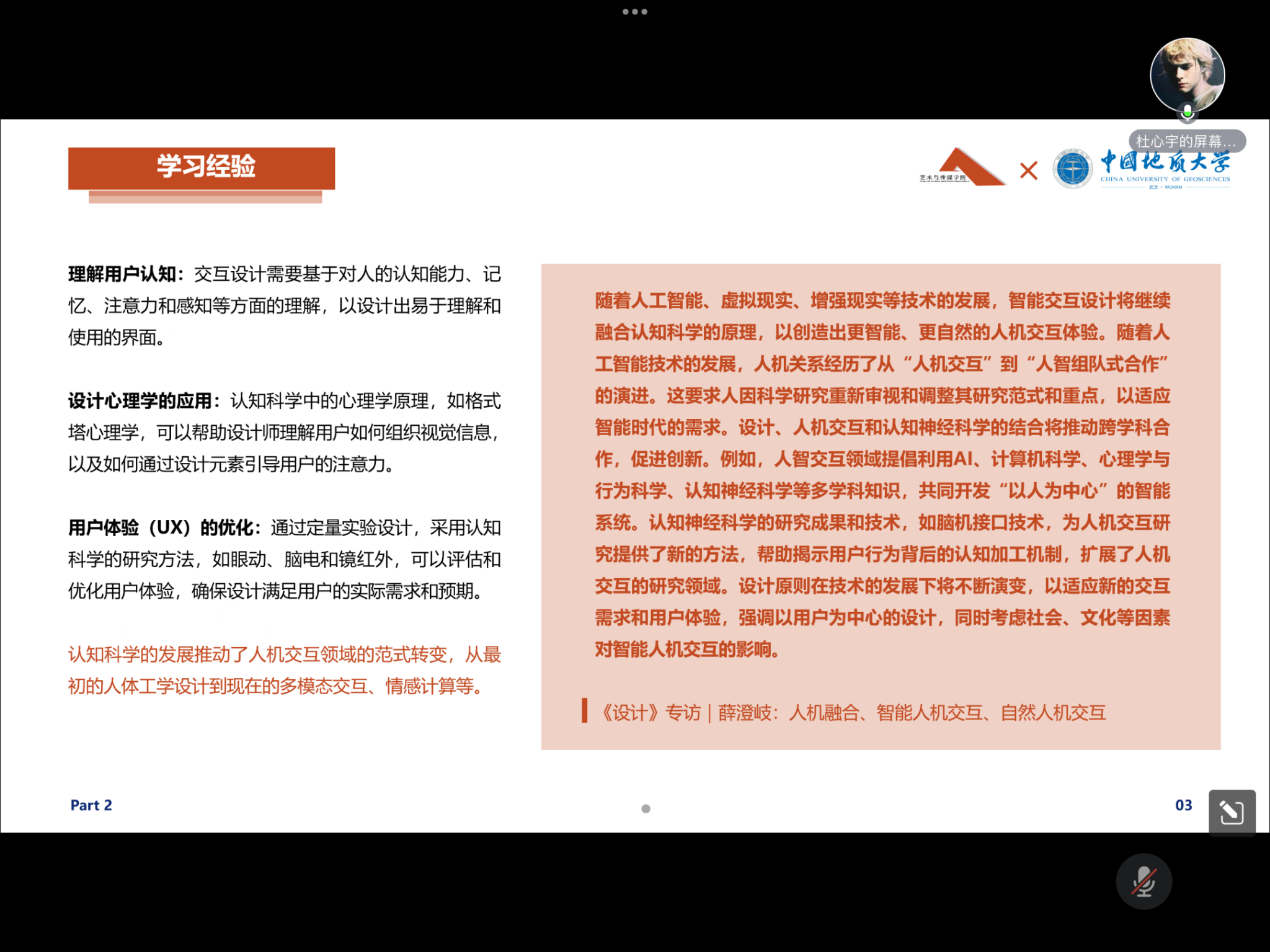 最后,2022级交互学研究生杜心宇同学分享了自己的获奖成果和学习经验。