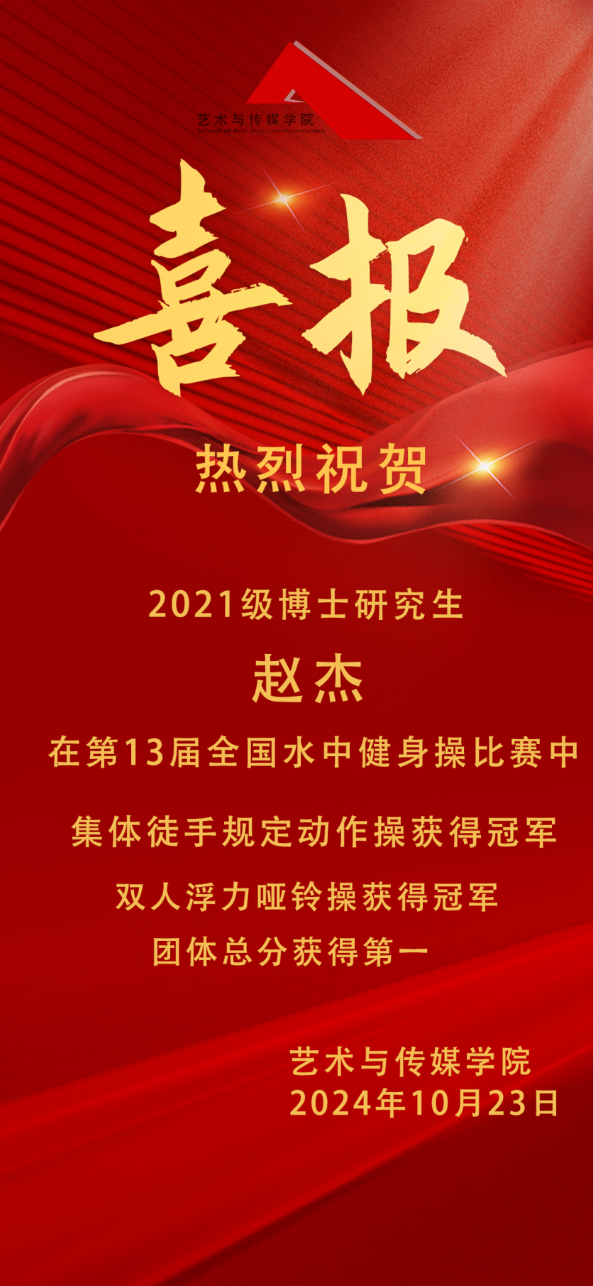 2024年10月19日至20日,第13届全国水中健身操比赛在安徽省马鞍山市奥体中心游泳馆举行。在此次水中健身操比赛中,中国地质大学(武汉)代表队共13人参赛,并斩获佳绩。bevictor伟德21级博士研究生赵杰获得集体徒手规定动作操冠军、双人浮力哑铃操冠军以及团体总分第一的优异成绩。