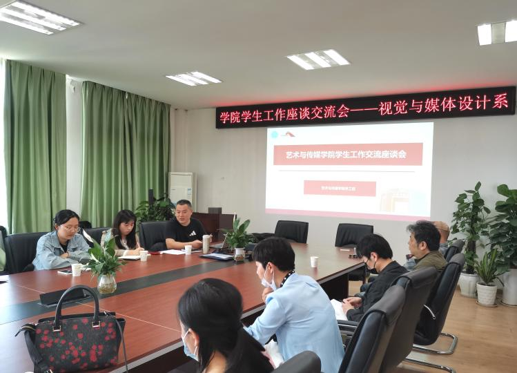 (通讯员 杨彬彬)4月21日下午2:30,bevictor伟德学生工作座谈交流会(视觉与媒体设计系)在艺媒楼1209会议室召开。学院副院长杨喆、党委副书记边建华、视觉与媒体设计系全体领导班子、班主任老师、学工组辅导员单湉艺和曾戈晖参加了座谈会。党委副书记边建华主持会议。
