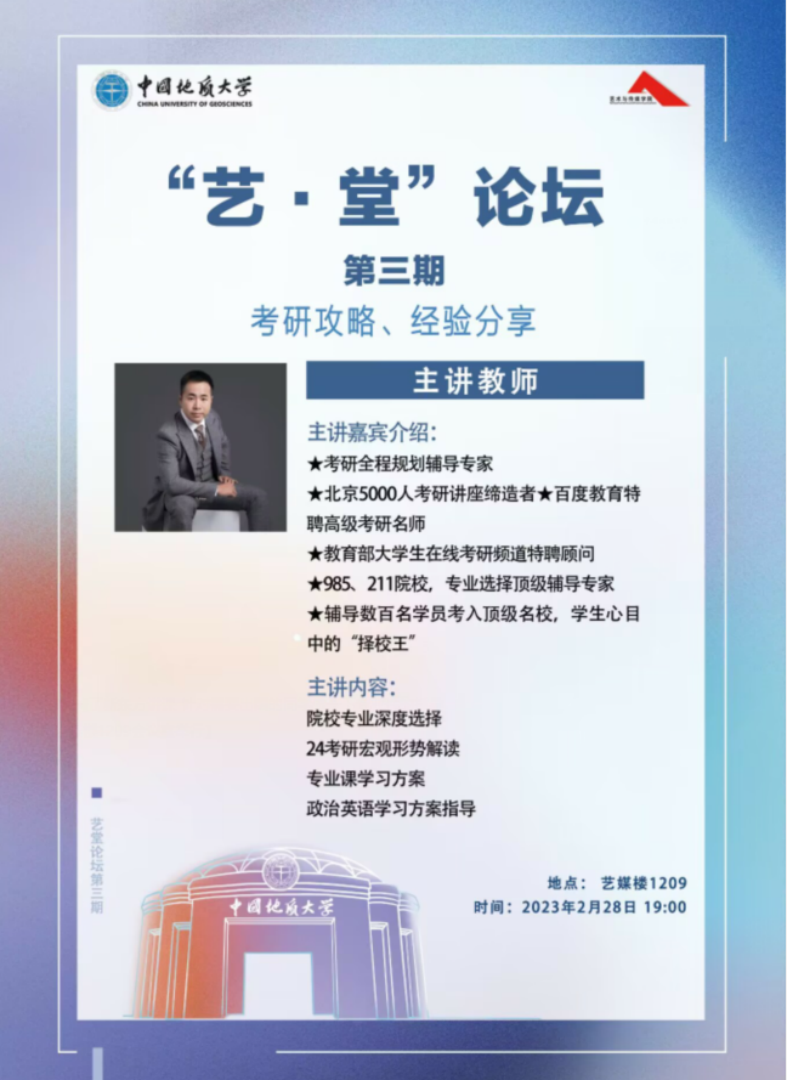 2月28日晚上19:00,bevictor伟德在1209会议室召开了本学期第三期“艺 堂”考研攻略、经验分享专场讲座。海文考研讲师杨剑峰做本次报告,bevictor伟德2020级本科生与2021级本科生参会,辅导员陈习良主持本次会议。