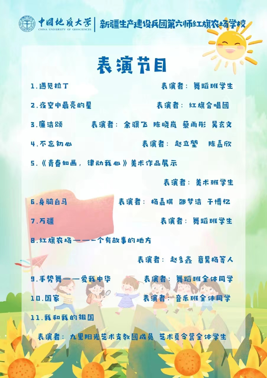 斯人若彩虹,遇上方知有。回想今日之旅,何尝不是一场值得庆幸的际遇。他们欢声笑语,他们朝气蓬勃,他们打打闹闹,这就是“小朋友们”最好的模样。在彩排的过程中,素日特别调皮的小朋友今天也表现得很棒,在边书记、单老师、曾老师以及各个节目负责人的带领下,他们不仅听从指挥而且收放自如。今天给我感触最深的是节目《国家》,表演这个节目的小朋友唱的十分响亮而且动作整齐划一。我骄傲,因为我选择了来这里支教;我骄傲,因为小朋友们从我们这里收获了成长