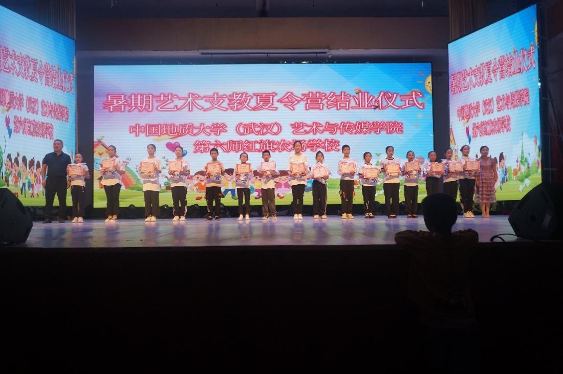 在本次艺术夏令营活动中,各个班级都涌现出一批优秀学员,他们在课堂上表现优异,成为了同学们的榜样。在学校和支教团各位老师的综合评定下共选出了30名优秀学生代表,结营仪式中边书记、王校长、马校长以及福泽大酒店的彭总上台为这批优秀学员颁发了荣誉证书和奖品,奖品是具有地大特色的七十周年校庆抱枕和玩偶,希望获奖的同学们可以以此为契机,在心里种下一颗艺术的种子,以饱满的热情和无限的希望迎接灿烂美好的明天。