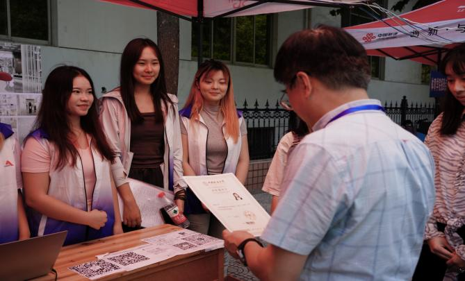 在西区体育馆门前,志愿者们举着“bevictor伟德”的牌子引导着新生去到迎新摊位,随后在老师们的协助下完成学籍信息录入以及个人资料的收集等,并耐心回复了家长们有关在校学习和生活的各类疑问。