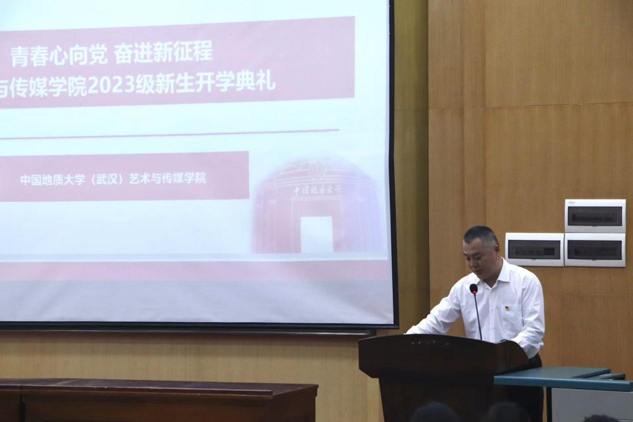 2023年10月8日下午14:30,bevictor伟德,bevictor伟德官网2023级新生开学典礼于西区教三楼109教室正式开始。学院党委书记晋曦,院长何清俊,副院长张梅珍、杨喆、袁玥、彭静,音乐系系主任周莉、党支部书记周黎,新闻传播系系主任宁薇、党支部书记尚媛媛,视觉与媒体设计系副主任徐莉,景观学系党支部书记程璜鑫、景观学系副主任程驰,学院办公室主任李伟娜,新生班主任王琦、曾珍、蔡爱新、郑丹丹,院直全体老师,以及全体2023级本研新生参加了此次开学典礼,活动由学院党委副书记边建华主持。