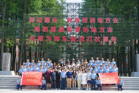 兵史馆前,队列整齐、着装规整的预警学员为我们的到来表示了热烈的欢迎,全体师生一同在兵史馆前合影。